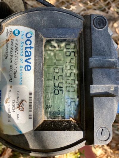 Water‑meter readings taken from the public easement confirm that more than 5.5 million gallons of water were applied to the sorghum field between mid‑October and mid‑December 2023.